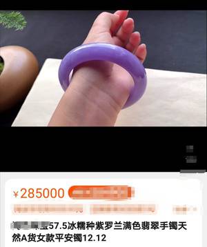 这个是磷铁矿手镯,也叫紫云母手镯,根本就不是翡翠,材质完全不是一个品种,价格正常在130-150左右,类似图1这种。紫罗兰满色翡翠手镯价格正常都是在28万左右的,参考图2。