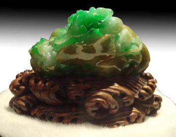 但是翡翠中铬在某些情况下,可以产生化学反应,从而使铬有少量的扩散作用,这就是人们觉得绿"长"的原因。产生绿"长"的翡翠主要有翡翠项链、翡翠手镯和翡翠项牌等与皮肤紧密接触的翡翠。