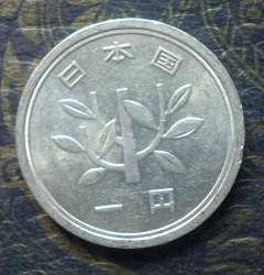正面是一种叫“若木”的植物,上下各书“日本国”和汉字面值“一円”。这个硬币只相当于人民币的8分钱。