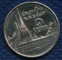 这是泰国的1泰铢硬币,“บาท”是泰语“(泰)铢”的意思。硬币背面是泰国国王普密蓬。硬币材质是铜镍合金。按目前汇率:1泰铢=0.2060人民币元,所以你的1泰铢硬币可以兑换0.2元人民币,不过有收藏价值,全新一枚在邮币交易市场上价值3元人民币左右。