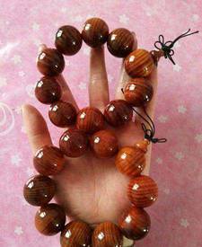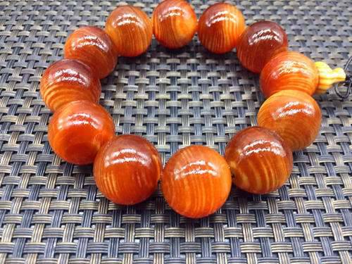 你这手串从照片效果看,有油脂的光泽,但是只看照片不能肯定真伪。即使真品,也不是优质的琥珀木。以下有琥珀木手串的照片,可以对比参考。