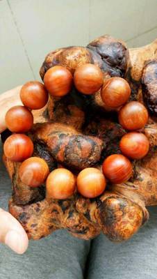 做手串一般都要选琥珀木瘿瘤包,一般的琥珀木,就是那种直纹的板材状的不适合做手串。好的瘿瘤包可遇不可求,有的瘿瘤包看外表不错,切开后却不适合做手串,真正切出花纹好、无杂质的珠料实属不易。毕竟是倒伏或埋藏地下成百上千年的东西了