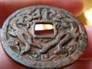 图2这枚崇宁重宝背双龙 现在能值个5000左右吧