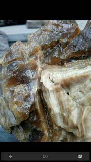 该石产自内蒙古阿拉善,是一块天然的戈壁石。早些年蜜酱鸡腿被一石友发到网上,几乎一边倒的认为是石雕作品。原因过于逼真,以致连小孩都能看出像鸡腿,自然值得存疑。当时由于缺少多角度图片,单从图片很难鉴定其是否天然,后来便不了了之。
