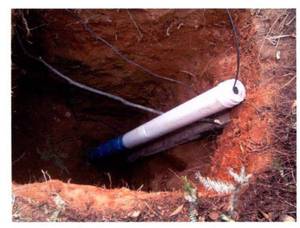 地下水水位监测仍采用较原始的皮尺测钟,水样采集用测钟、测绳连接自行车内胎制作的“土采样器”来采取钻孔内的地下水水样。