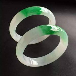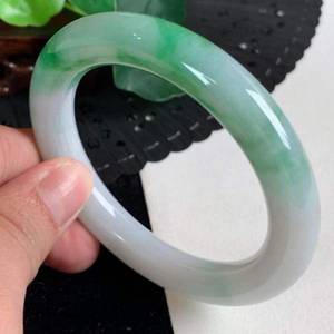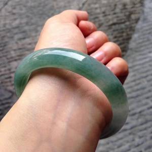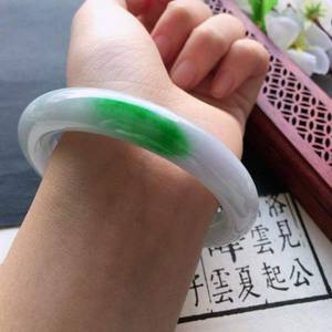 看似糯种翡翠飘一点翠色的圆条手镯。底子比较纯净,翠色明亮,水头一般,中档品质。因为是圆镯,比扁条手镯费料,通常价格会略高一点。各地价格不同,如果无大的瑕疵,有正规鉴定证书,中几千元比较靠谱。如果是飘多一点的阳绿,价值会更高。仅供参考。