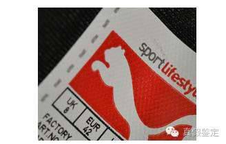 正品彪马鞋标字体清析,明了,边缘干脆有力。假标的话,即便是高仿的,字体印刷质量也明显不到正品的水平,标上字体颜料一块重一块轻,字体边缘细看起来坑坑洼洼。