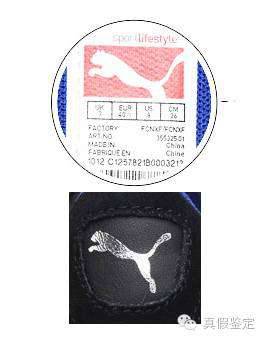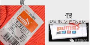 正品彪马Puma的标上有编号,这个编号与鞋盒上号是一致的。假货大多数不会细到这一点的。