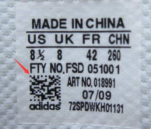 二维横向12格,竖向13格,且下方adidas字母紧靠,假标的格数一般会有超标,如下图就明显是假的。