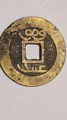 藏品特征:这是一枚铜质钱币,钱币是内方外圆形。钱币的外圆直径是2.8厘米,厚度0.18厘米。在钱币的正面刻
