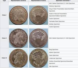 1804年版的1美元银币(1804 dollar. Bowed Liberty Dollar )存世量总共只有15枚,版别差异有3个品种( "Class I", "Class II", "Class III")