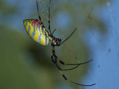 这种蜘蛛叫“棒络新妇”,有毒,多见于长江中下游地区,不过毒性较小,被咬后会很痛,但不会有大的危险。