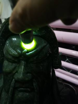 这个目测比较像碧玉制品,也可能是石英岩玉制品,但可以肯定不是翡翠扳指。建议复检鉴定一下比较好,不过如果是如图这种价格便宜的话就算了,即使是和田玉也不是值得收藏的。