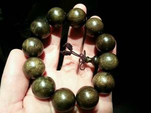 今天朋友送了一串珠子,手串,求鉴定是什么木头的。有香味,类似药味,有点凉的味道。他说是阴沉木,可我