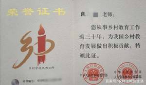 在前些年,或某些地方,当地政府或教育行政部门,曾给当地的教育系统颁发过“30年乡村教师”荣誉证。
