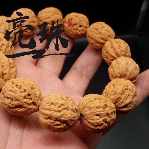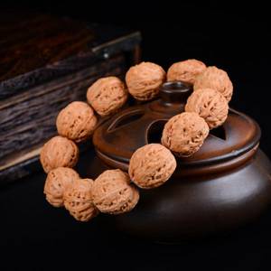 打磨过的山核桃串,东北山核桃和普通核桃都来源于胡桃科,但却是不同种的两种植物。首先在体积上就有明显区别,普通核桃较大,而东北山核桃个头偏小;其次,在产地和分布上,东北山核桃主产于东北地区;而普通核桃最初是从西域(即今中亚地区)引种而来,产区分布较为广泛;另外,两者在食疗功效的侧重点上也有不同,东北山核桃重于滋肾阴、定喘嗽,而普通核桃长于养血脉、增智健脑。