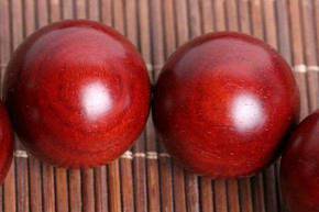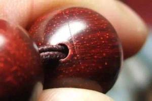 3.如果小叶紫檀珠子的裂缝比较明显,可以滴进去一些502,粘牢后用细砂纸抛一下,然后抹点油或者打上蜡用手一搓,这种方法可以起到不错的效果。