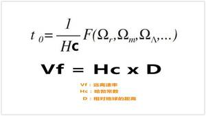 这个任务后来由哈勃来完成,根据之前的工作,哈勃在1929年发表了一篇论文,论文中给出了哈勃定律,给出了计算公式,在此之后宇宙是膨胀的已成定音。知道了宇宙处在膨胀过程中,那说明在宇宙的早期应该是一个炽热的、体积极小的状态,计算宇宙的年龄也就是算早期到现在过去了多少年,而哈勃定律中的关键因素哈勃常数的倒数所表示的意义就是说从现在倒缩回去需要花费的时间,然而这个数据并不算准确,科学家再结合对于暗能量的研究,最终得出了宇宙的年龄是138亿年。
