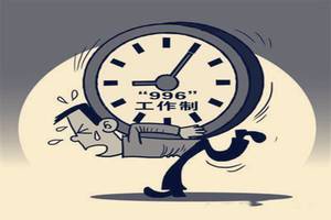996工作制是指早上9点上班、晚上9点下班,中午和傍晚休息1小时(或不到),总计工作10小时以上,并且一周工作6天的工作制度,代表着中国互联网企业盛行的加班文化。