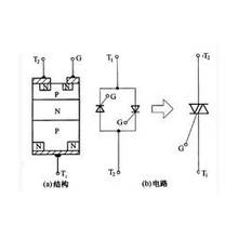 可控硅是P1N1P2N2四层三端结构元件,共有三个PN结,分析原理时,可以把它看作由一个PNP管和一个NPN管所组成,其等效图解如右图所示。双向可控硅:双向可控硅是一种硅可控整流器件,也称作双向晶闸管。这种器件在电路中能够实现交流电的无触点控制,以小电流控制大电流,具有无火花、动作快、寿命长、可靠性高以及简化电路结构等优点。从外表上看,双向可控硅和普通可控硅很相似,也有三个电极。