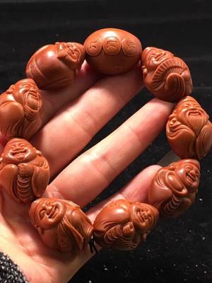大橄榄核手串,进口的橄榄核基本都是巴西核,进口巴西核,比较爱吃油,在刚拿到手的时候尤其要注意,上油的时候一定要少上,擦完以后把多余油的及时清理掉,巴西核特别容易盘花。但是如果不在乎花不花的情况下,你可以多上点油拿塑料袋闷起来,最终的盘玩结果其实都是全部上色,结果是一样的。防晒。太阳光或高温灯光长时间直晒将导致开裂