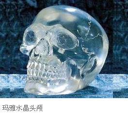 在中美洲的贝利兹(Belize)的马雅遗迹中发现了水晶骷髅。这个水晶骷髅是个完全以水晶石加工研磨而成的,大小几乎和人类的骷髅相同。 至今马雅后裔仍然会施咒于透明水晶,小心地带在身上。而马雅人对骷髅是一种神明供物,象征和神明心意相通。 叫人难以想像的制作技术。水晶是一种硬度极高,几乎无法任意切断、随意造形的矿石,但古马雅人却可以轻易地完成如此精巧的水晶制品。 ********************************************** 一九二七年在洪都拉斯一次马雅文化古代都市鲁巴达的挖掘工作中,在已倒塌的祭坛中发现一千年前的水晶头盖骨。人类学家基恩博士认为此是女性的头盖骨。此水晶什么是水晶骷髅