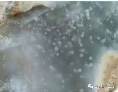“石花”是在翡翠毛料或饰品中常有透明度稍差的小团块与纤维状晶体交织在一起的,絮状的白色沉淀物。因为形状特点各异,业内常把密度较大,颜色较重的称为“石脑”或“死花”。翡翠中有明显的石花时,容易使翡翠的价值受到影响。
