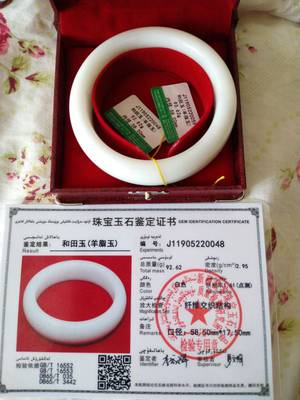 这是一款能出证书的和田玉手镯,从鉴定角度来说,真品无疑问!56克多,目前玉器市场行情在1500元左右为正常卖价。