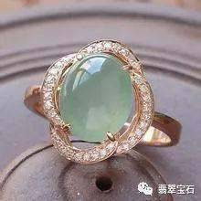 1、镶嵌戒指通常采用18K金打造(低端的,则会采用银或14K金。),镶上翡翠戒面,通常周边还会嵌钻。