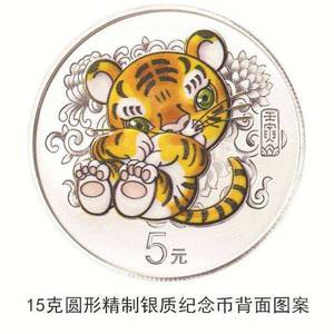 1.2022中国壬寅(虎)年金银纪念币正面图案均为中华人民共和国国徽,衬以中国传统吉祥纹饰,并刊国名、年号。10公斤圆形金质纪念币、2公斤圆形金质纪念币和1公斤圆形银质纪念币背面图案均为写实风格母子虎造型,1公斤梅花形金质纪念币和30克梅花形银质纪念币背面图案均为装饰风格虎造型,500克圆形金质纪念币和15克梅花形金质纪念币背面图案均为由线条、图案构成的装饰老虎造型,150克长方形金质纪念币和30克扇形银质纪念币背面图案均为行走中的虎与特写虎头造型,10克扇形金质纪念币背面图案为民俗布老虎造型,3克圆形金质纪念币和15克圆形银质纪念币(彩色)背面图案均为卡通风格小虎造型,150克长方形银质纪念币(彩色)背面图案为蹲坐的幼虎造型。