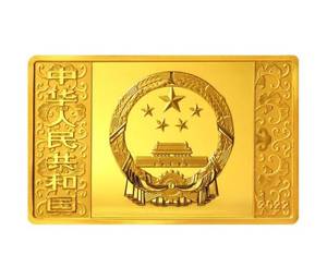 (五)150克长方形金质纪念币为精制币,含纯金150克,规格64毫米x40毫米,面额2000元,成色99.9%,最大发行量600枚。