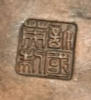 这个底款文字是篆书字体,右起竖读为 : 许国英制。