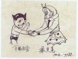 来一张手冢治虫先生亲笔画作,表明漫画与连环画的发展关系