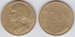 这是法国的硬币,面额20生丁(1法国法郎=100生丁),发行时间:1976年。硬币正面是法兰西共和国的国家象zhidao征玛丽安娜。目前法国流通欧元,法国法郎已经作废,这种是旧版的法郎硬币所以是不再流通的。但内是有收藏价值,全新一枚在邮币交易市场上价值4元人民币左右。