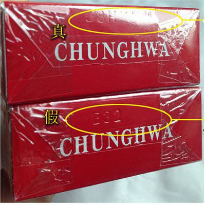 2、真烟条盒表面有光泽,涂色均匀,烫金光亮,比较鲜艳;假烟一般烫金暗淡、涂色不均,表面光泽差及印刷字体模糊等。