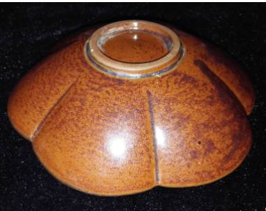 ~褐色釉面无甚光泽,褐色釉内时有黑釉显现,或成片覆盖于黑釉上,黑釉内有褐色的丝状纹。