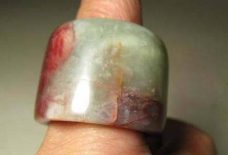 从你的图片说了,这个是岫玉扳指,人工染色是现代的东西。