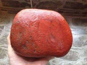 这是红碧石,也叫肝石,属于杂质含量大的玉髓类。产地丰富,纹理颜色好的,可以做观赏石,普通的价值不大。