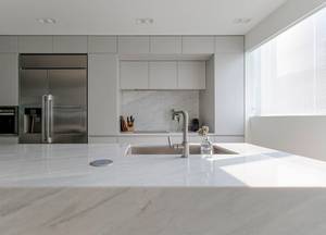 人们大都喜欢把玄关的地坪和客厅区分开来,自成一体。或用纹理美妙、光可鉴人的磨光大理石拼花,或用图案各异、镜面抛光的地砖拼花勾勒而成。在此,我们需把握三大原则:易保洁、耐用、美观。