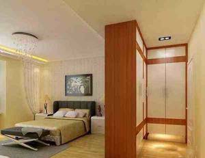 在设计卧室门廊时还应注意高度不能太高,否则会给人以压迫感,这时可将底部设计成储物柜的形式,储物柜的高度不能太高,0.8米左右即可,上面可设置成博古架,这样的效果比较理想。