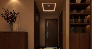 玄关的空间往往比较局促,容易产生压抑感。但通过局部的吊顶配合,往往能改变玄关空间的比例和尺度。而且在设计师的巧妙构思下,玄关吊顶往往成为极具表现力的室内一景。它可以是自由流畅的曲线;也可以是层次分明、凹凸变化的几何体;也可以是大胆露骨的木龙骨,上面悬挂点点绿意。这里我们需要把握的原则是:简洁、整体统一、有个性。要将玄关的吊顶和客厅的吊顶结合起来考虑。