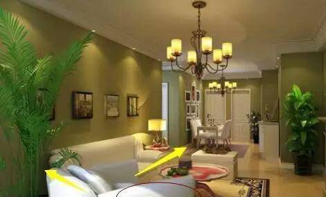 一般来说,客厅进行的对角线方位就是客厅财位最佳的位置。如果大门在客厅左边,那么右边对角线的顶端就是财位;如果大门在客厅的右边,则财位就是左边对角线的顶端。