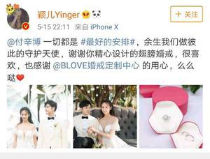 付辛博在BLOVE还亲自为颖儿设计了一个婚戒呢,这个婚戒寓意着永恒的爱,婚戒旁还有一对翅膀,代表付辛博要做颖儿的翅膀,一生只守护这个爱冒险、爱飞的这个射手女!