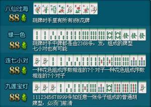 8、8番分为花龙、推不倒、三色三同顺、三色三节高、无番和、妙手回春、海底捞月、杠上开花、抢杠和