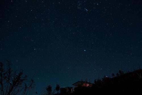 距离北斗七星勺头部不远地方,在小熊座的尾部,有一颗亮度和北斗七星十分相近的星,它高高悬挂于北部天际,它就是北极星。北极星是人们在夜间分辨方向的最可靠的标志,而且每个夜晚,星星就会从东向西移动(事实上是我们的地球在由西向东进行自转),但北极星会原地不动。这是由于北极星所在的位置刚好是地球自转轴线北端所指的位置,而且处在地球北极的正上方。