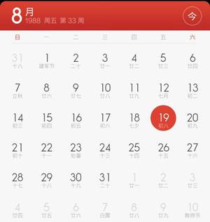 什么意思?你是农历生日想看公历生日吗?如果是的话,找到自己出生那年的日历比如1988 然后去找你农历生日是哪天 比如8月初八 那你的公历生日就是1988年8月19,如图所示