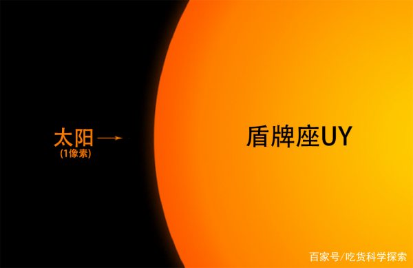 虽然盾牌座UY已经不是人类发现的最大天体,但是这并没有妨碍它突出太阳的渺小。如果太阳是一粒沙子的话,那么盾牌座UY就是一个成年人,可见两者体积差距有多么的大。