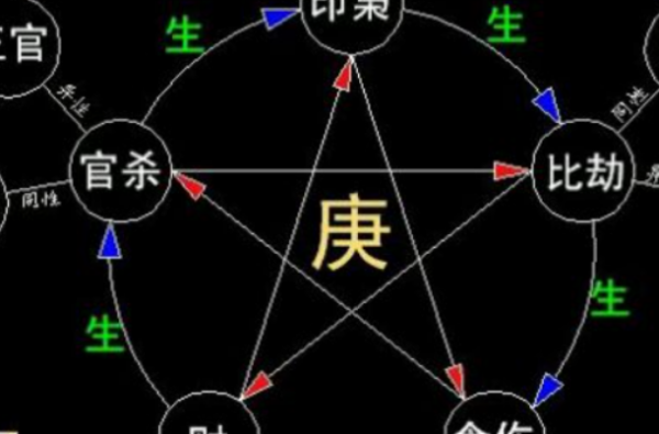 其天干是阳干见阴干,阴干见阳干为正,阳干见阳干,阴干见阴干为偏。与日干五行相同者为比肩劫财,劫财为正,比肩为偏。十神侧重人事分析,五行侧重个人禀气分量轻重,两者相辅相成。