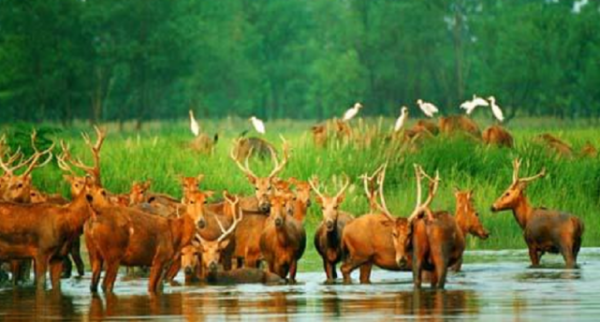 有着世界上最大的野生麋鹿种群,景区内你可以看到根据姜子牙的传说而修建的封神台,还能享受皇帝一般的待遇在观鹿台欣赏悠闲的麋鹿,还有在1986年回归中国39头麋鹿的墓碑,正是他们让麋鹿家族的香火源源不断,现如今保护区里的一千多头麋鹿都是他们的后裔。这个墓碑还有个好听的名字,叫做听嗷坡,小编在想,这个名字是不是就在怀念他们在这个保护区留下的那嗷嗷叫声呢?