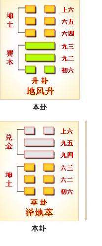 如果上从下向上排列:上震下坤是萃卦 如下图